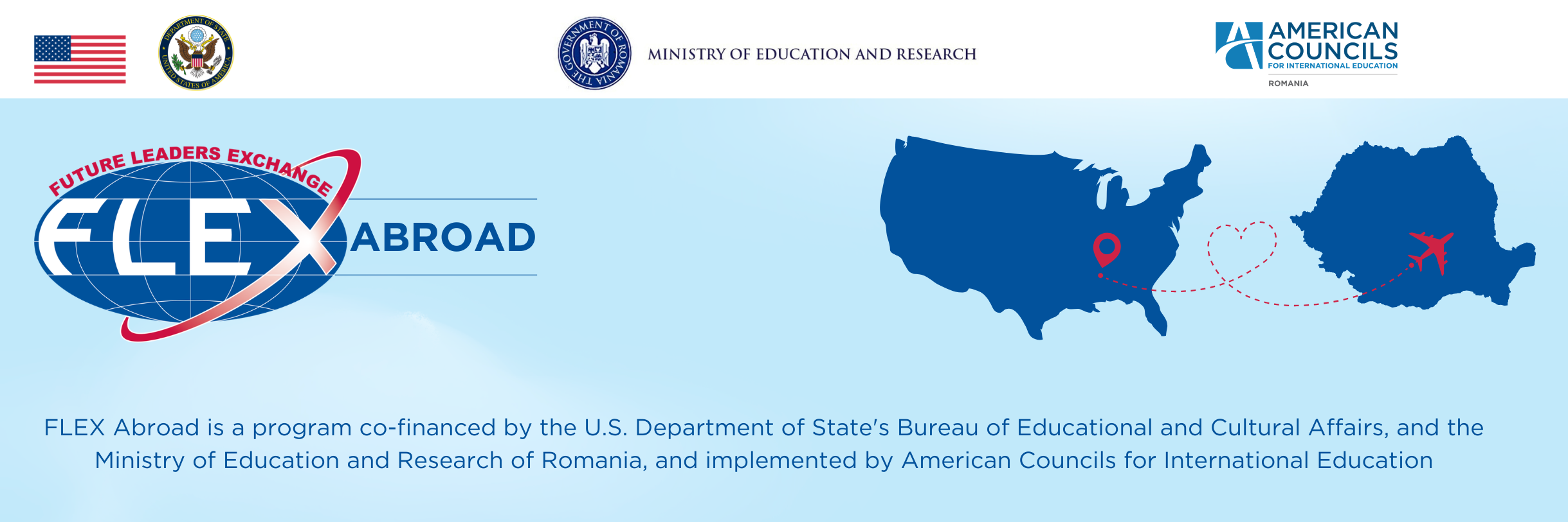 Programul FLEX Abroad revine în România pentru anul academic 2026–2027 ca urmare a acordului de cofinanțare dintre Departamentul de Stat al SUA, prin Biroul pentru Afaceri Educaționale și Culturale, și Ministerul Educației și Cercetării din România.